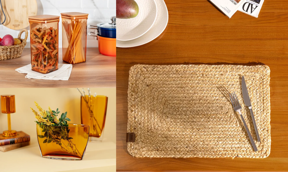 На кухне. Поместите на буфете, кухонном столике или комоде коллекцию ваз ручной работы Lıllebonne. В них будут уютно смотреться сухие травы и осенние листья. Замените контейнеры для хранения продуктов на Kaviera Wooden Lid и обновите сервировочные салфетки.