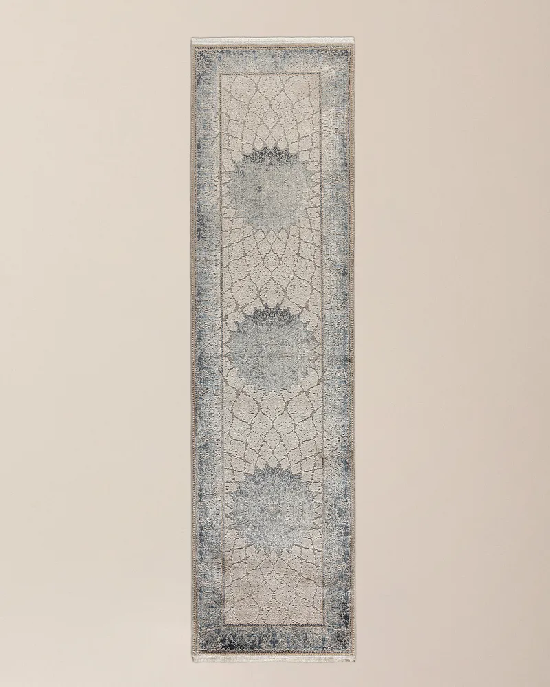 Лучше выбирать коврик с узорами, такой как Renier в восточном стиле и с винтажным эффектом. Если на него случайно прольется жидкость, пятно будет легче вывести, а небольшой след не будет заметен.