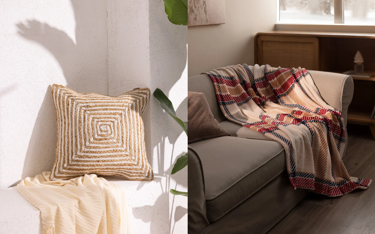 В гостиной. Замените привычные наволочки для подушек декоративными, например Orsay с эффектом плетеных нитей. Дополнит композицию плед Delit в клетку, небрежно брошенный на диван. Так вы создадите в гостиной нужное настроение для маленьких осенних радостей: чая с книгой или фильмом.