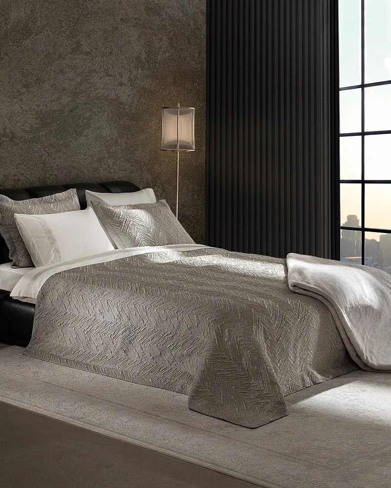 Евро-комплект Charente — изысканный, воплощающий концепцию urban luxury, то есть концепцию городской роскоши с акцентом на текстуру и благородную сдержанность. Дополнительно в набор включены флисовый плед, одеяло 200x240 и покрывало 240x250 см. Материал декоративных предметов — полиэстер.