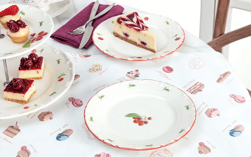 Выбирая скатерть, стоит обратить внимание на изделия, выполненные из натуральных тканей – льна хлопка, т.к. клеенка может испортить весь вид.