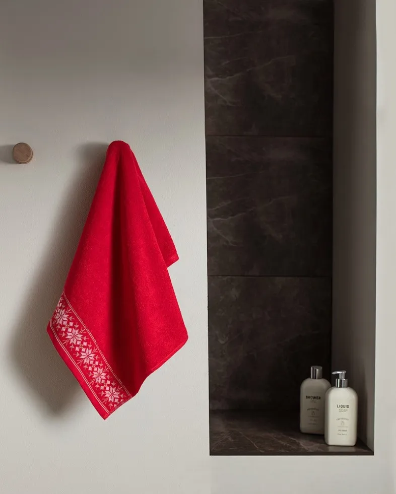 Идеально дополнит этот набор одно из полотенец Billie, Clarette, Perle или Caresse в красном цвете и комплект ковриков Mathilda кирпичного оттенка от Madame Coco.
