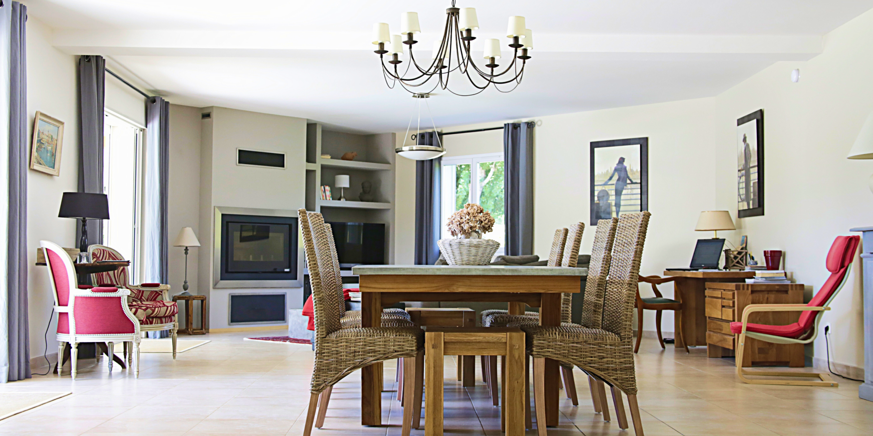 Чтобы обновить кухню и гостиную (а в некоторых домах эти два помещения соединены в кухню-гостиную), достаточно так же добавить несколько ярких акцентов. Застелите обеденный стол белой скатертью с красным принтом Lirije от Madame Coco или насыщенно красной Andray.
