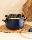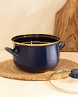 Темно-синий цвет придает кастрюле элегантность и глубину, подчеркивая стиль интерьера. Эмалированное покрытие гарантирует долговечность и легкость в уходе.