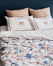 Включает в себя пододеяльник размером 160x220 см, наволочку 50x70 см и простыню на резинке 100x200 см. 100% хлопок.