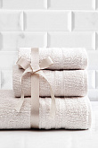 Выполненные в бежевом цвете, полотенца придают нежность и спокойствие, подчеркивая классический и расслабляющий стиль. Изготовленные из мягкого и плотного материала, они эффективно впитывают влагу и приятны к телу.