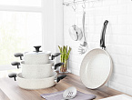Комплект алюминиевой посуды Gordes 18см, 22см, 26см, 26см - кремовый. 7 предметов: 3 кастрюли, 3 крышки и 1 сковорода