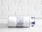 Белый фон, дополненный орнаментами, придает полотенцу изысканный вид, подчеркивая чистоту и элегантность дизайна. Мягкий и впитывающий материал обеспечивает комфорт и функциональность, делая его идеальным для повседневного использования. Легкость в уходе и устойчивость к стирке помогают сохранять яркость узоров и белизну ткани. Это полотенце идеально подходит для тех, кто ценит красоту и практичность, и желает добавить в свою ванную комнату особый шарм.