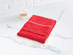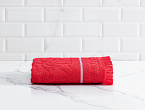 Яркий красный оттенок делает полотенце выразительным и стильным аксессуаром для ванной комнаты.